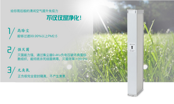 新風(fēng)系統(tǒng)電子空氣凈化機(jī)使用在獨立新風(fēng)系統(tǒng)的主新風(fēng)入口處。利用集塵室,它從不斷引入的新風(fēng)中捕捉數(shù)量眾多的微小顆粒(0.3微米或更大), 包括灰塵、細(xì)菌等。